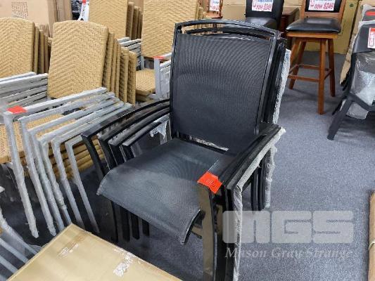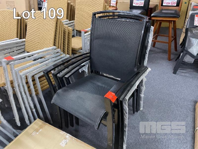 7 x OUTDOOR CHAIRS, STACKING, BLACK