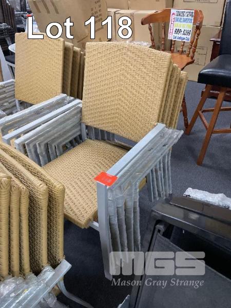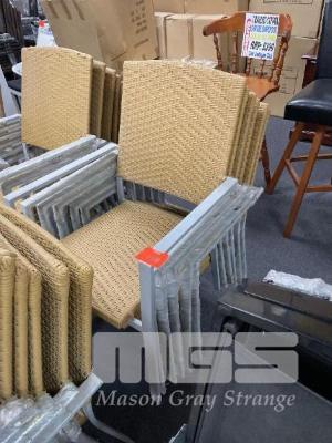 6 x STACKING OUTDOOR WICKER CHAIRS, ALLOY FRAME