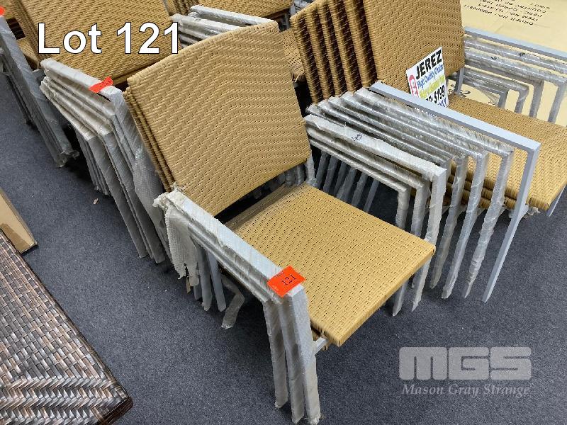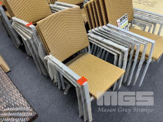 3 x STACKING OUTDOOR WICKER CHAIRS, ALLOY FRAME