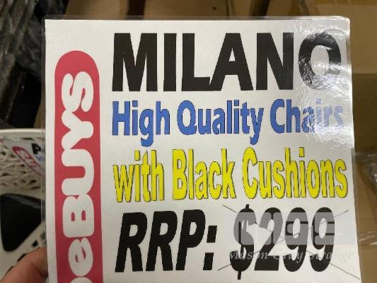 8 x POLY OUTDOOR CHAIRS, MILANO, BLACK CUSHIONS