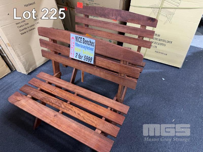 2 x HARDWOOD BENCH SEATS, 900mm
