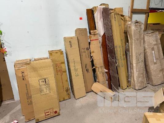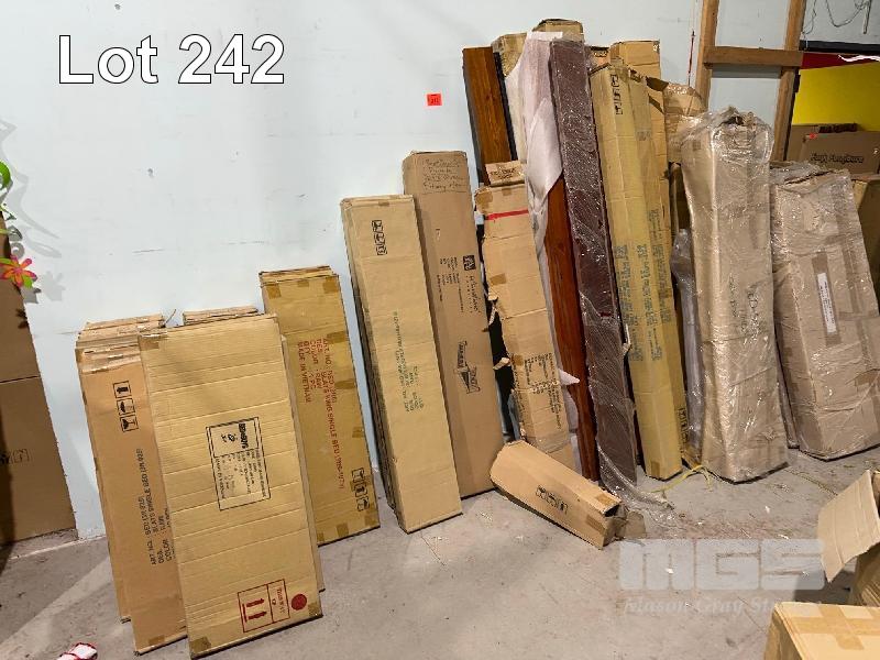 HUGE QUANTITY SIDE BED RAIL KITS & BED SLAT KITS ON WALL & ASSORTED CHEVAL MIRRORS