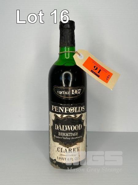 1967 PENFOLDS CLARET, DALWOOD HERMITAGE 1 PINT 6fl, CORK