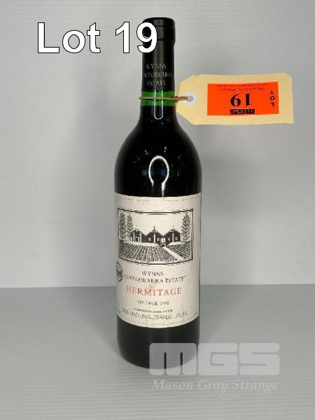 1992 WYNNS COONAWARRA ESTATE HERMITAGE, 750ml, CORK BOTTLE & CAPSULE GOOD CONDITION, LABEL GOOD, SMALL TEARS FILL LINE: HIGH FILL