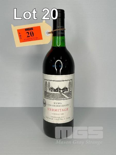 1992 WYNNS COONAWARRA ESTATE HERMITAGE, 750ml, CORK BOTTLE & CAPSULE GOOD CONDITION, LABEL GOOD, SMALL TEARS FILL LINE: BASE NECK