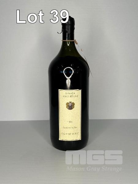 1996 MIRANDA FAMILY RESERVE, OLD VINE SHIRAZ, MAGNUM, CORK BOTTLE GREAT CONDITION, LABEL GOOD CONDITION, CAPSULE POOR FILL LINE: MID SHOULDER