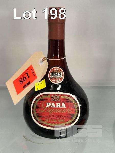 1947 PARA LIQUEUR PORT. ULLAGE 7 CM. CAPSULE & BOTTLE FAIR. LABEL SLIGHT DISCOLOURATION A FEW NICKS OFF THE EDGES.