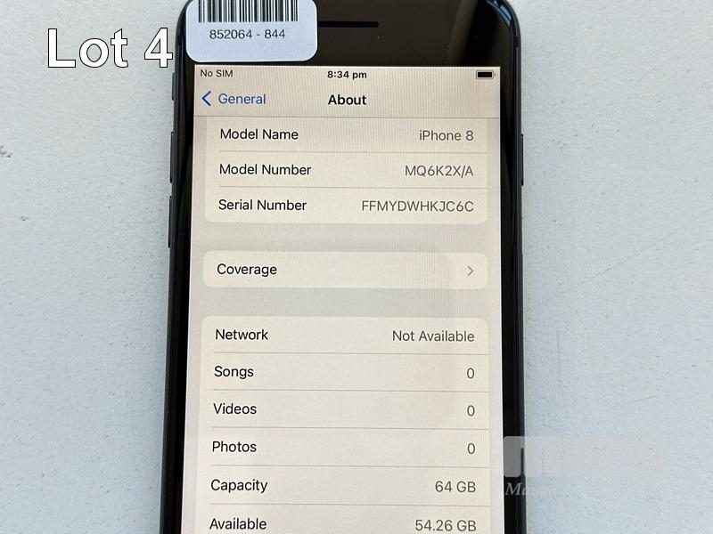 APPLE iPHONE 8, 64GB, SPACE GREY, MODEL MQ6K2X/A, BATTERY HEALTH 100% (NO CABLE, NO CHARGER) S/N:FFMYDWHKJC6C