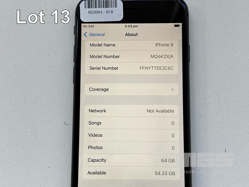APPLE iPHONE 8, 64GB, SPACE GREY, MODEL MQ6K2X/A, BATTERY HEALTH 94% (NO CABLE, NO CHARGER) S/N:FFNYTTEEJC6C