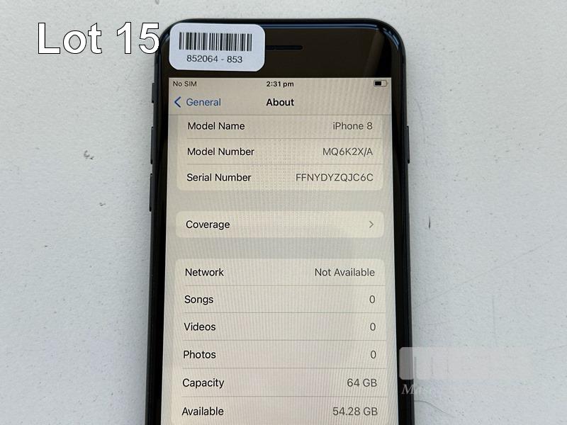 APPLE iPHONE 8, 64GB, SPACE GREY, MODEL MQ6K2X/A, BATTERY HEALTH 93% (NO CABLE, NO CHARGER) S/N:FFNYDYZQJC6C