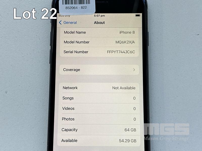 APPLE iPHONE 8, 64GB, SPACE GREY, MODEL MQ6K2X/A, BATTERY HEALTH 91% (NO CABLE, NO CHARGER) S/N:FFPYT744JC6C