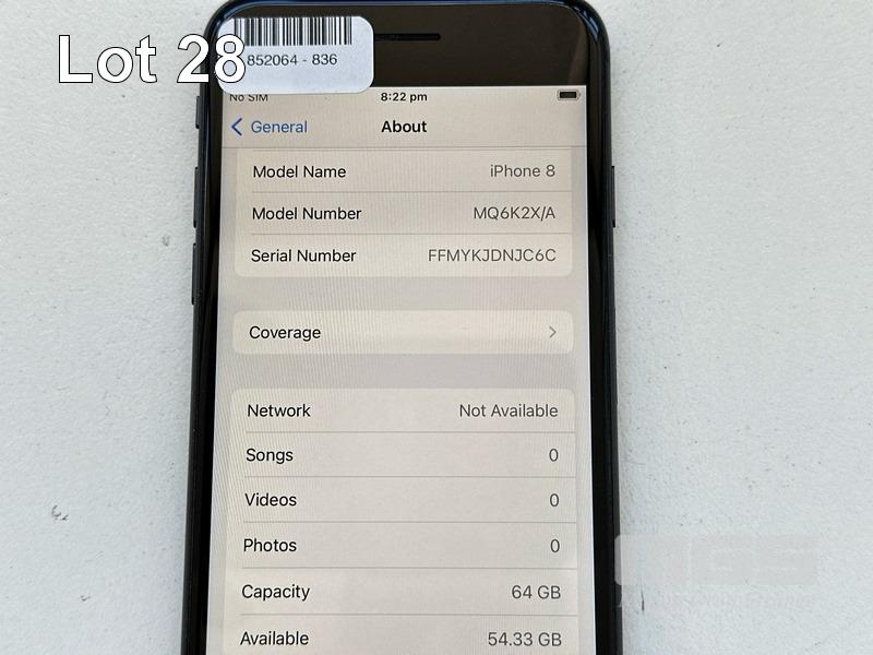 APPLE iPHONE 8, 64GB, SPACE GREY, MODEL MQ6K2X/A, BATTERY HEALTH 89% (NO CABLE, NO CHARGER) S/N:FFMYKJDNJC6C