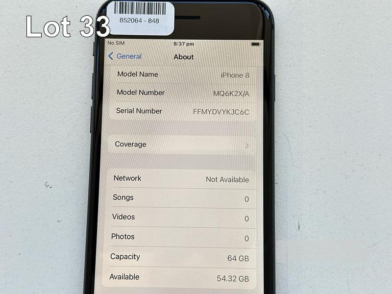 APPLE iPHONE 8, 64GB, SPACE GREY, MODEL MQ6K2X/A, BATTERY HEALTH 88% (NO CABLE, NO CHARGER) S/N:FFMYDVYKJC6C