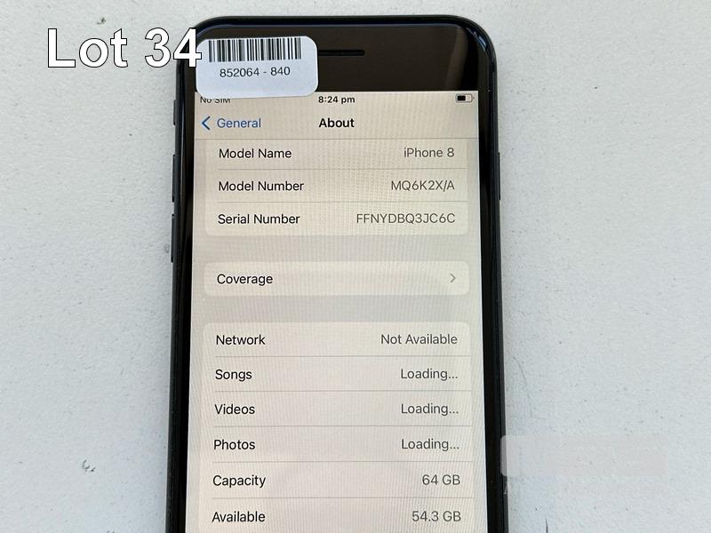 APPLE iPHONE 8, 64GB, SPACE GREY, MODEL MQ6K2X/A, BATTERY HEALTH 88% (NO CABLE, NO CHARGER) S/N:FFNYDBQ3JC6C