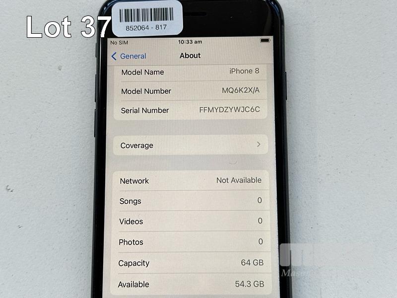 APPLE iPHONE 8, 64GB, SPACE GREY, MODEL MQ6K2X/A, BATTERY HEALTH 88% (NO CABLE, NO CHARGER) S/N:FFMYDZYWJC6C