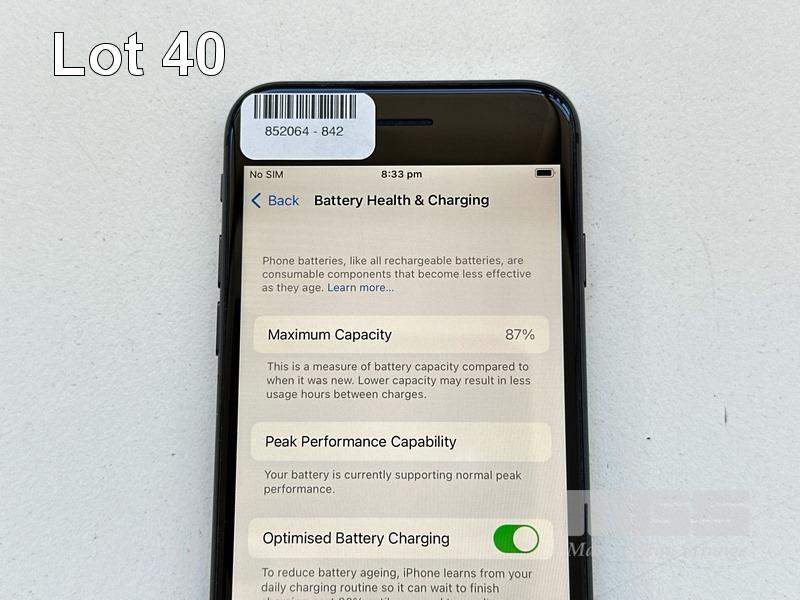 APPLE iPHONE 8, 64GB, SPACE GREY, MODEL MQ6K2X/A, BATTERY HEALTH 87% (NO CABLE, NO CHARGER) S/N:FFMYDGZ9JC6C