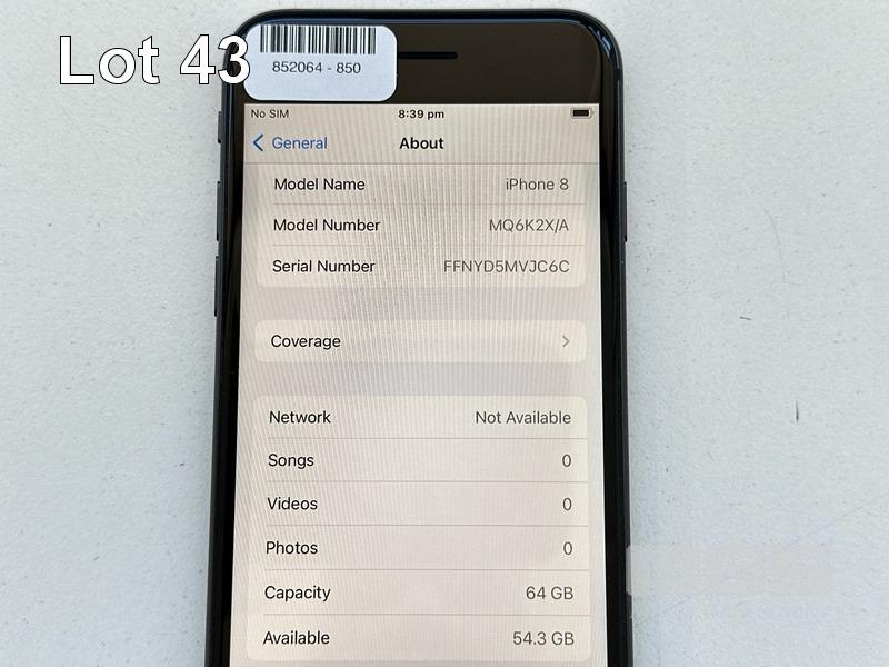 APPLE iPHONE 8, 64GB, SPACE GREY, MODEL MQ6K2X/A, BATTERY HEALTH 86% (NO CABLE, NO CHARGER) S/N:FFNYD5MVJC6C