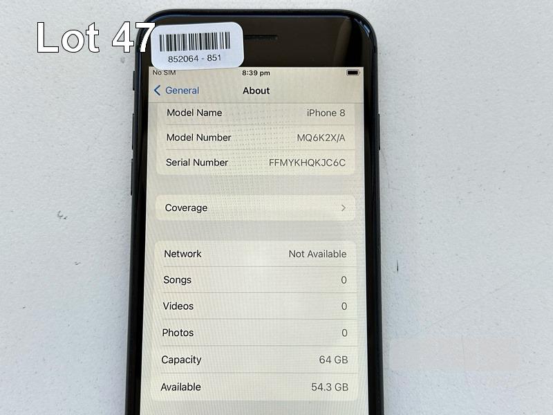 APPLE iPHONE 8, 64GB, SPACE GREY, MODEL MQ6K2X/A, BATTERY HEALTH 85% (NO CABLE, NO CHARGER) S/N:FFMYKHQKJC6C