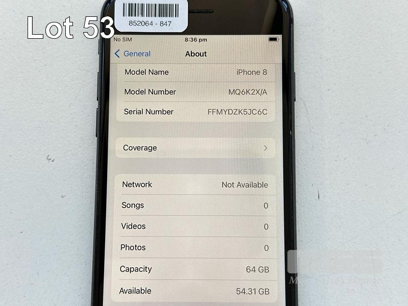 APPLE iPHONE 8, 64GB, SPACE GREY, MODEL MQ6K2X/A, BATTERY HEALTH 82% (NO CABLE, NO CHARGER) S/N:FFMYDZK5JC6C