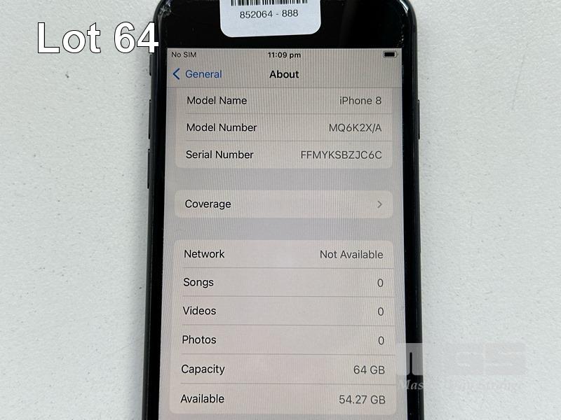 APPLE iPHONE 8, 64GB, SPACE GREY, MODEL MQ6K2X/A, BATTERY HEALTH 90% (NO CABLE, NO CHARGER) (NOTE: MINOR DAMAGE) S/N:FFMYKSBZJC6C
