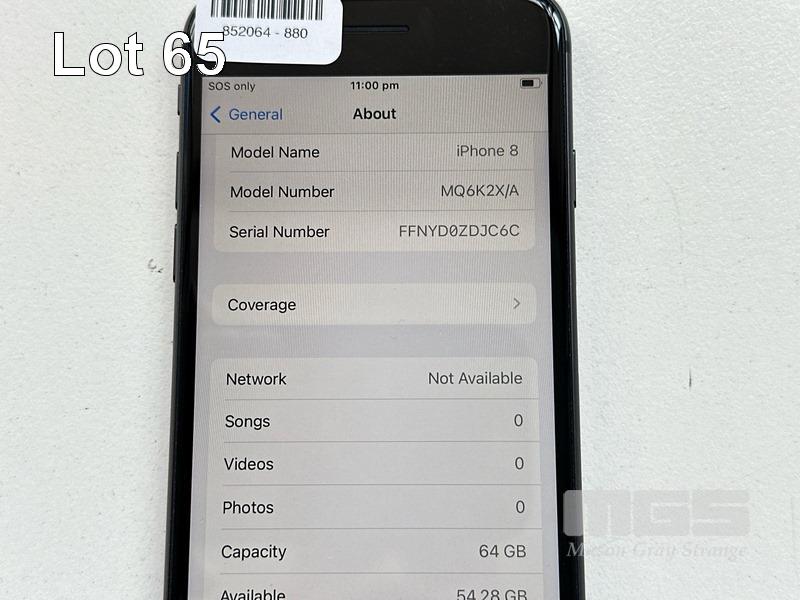 APPLE iPHONE 8, 64GB, SPACE GREY, MODEL MQ6K2X/A, BATTERY HEALTH 90% (NO CABLE, NO CHARGER) (NOTE: SCRATCHES ON SCREEN) S/N:FFNYD0ZDJC6C