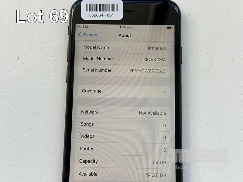 APPLE iPHONE 8, 64GB, SPACE GREY, MODEL MQ6K2X/A, BATTERY HEALTH 88% (NO CABLE, NO CHARGER) (NOTE: MINOR DAMAGE ON BACK) S/N:FFMYDWZ9JC6C
