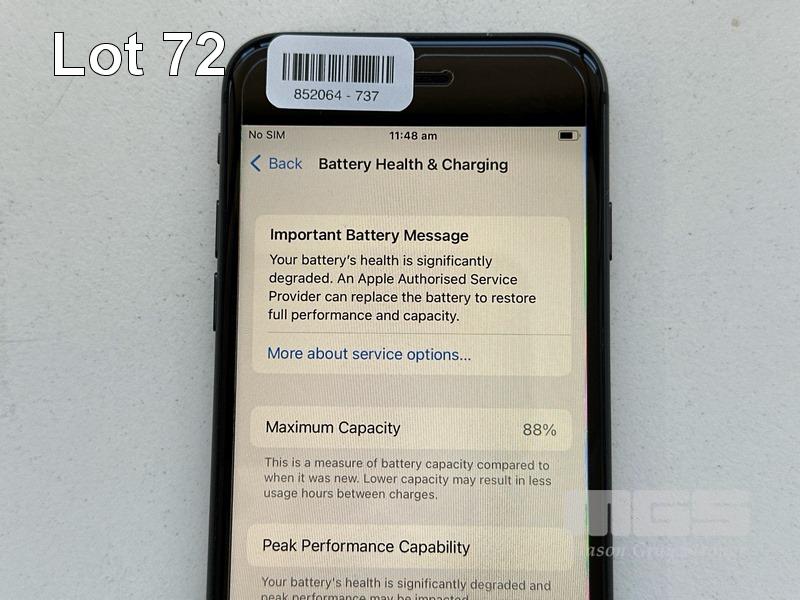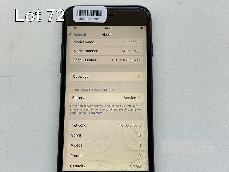 APPLE iPHONE 8, 64GB, SPACE GREY, MODEL MQ6K2X/A, BATTERY HEALTH 88% (NO CABLE, NO CHARGER) (NOTE: BATTERY SERVICE MESSAGE) S/N:C8PYHSPRJC6C