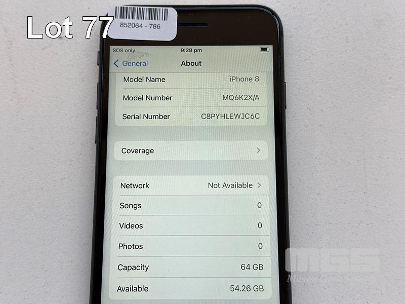 APPLE iPHONE 8, 64GB, SPACE GREY, MODEL MQ6K2X/A, BATTERY HEALTH 87% (NO CABLE, NO CHARGER) (NOTE: SCREEN COLOUR FAULT) S/N:C8PYHLEWJC6C