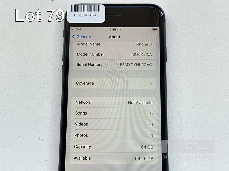 APPLE iPHONE 8, 64GB, SPACE GREY, MODEL MQ6K2X/A, BATTERY HEALTH 86% (NO CABLE, NO CHARGER) (NOTE: SCRATCHES ON SCREEN) S/N:FFMYDYHKJC6C