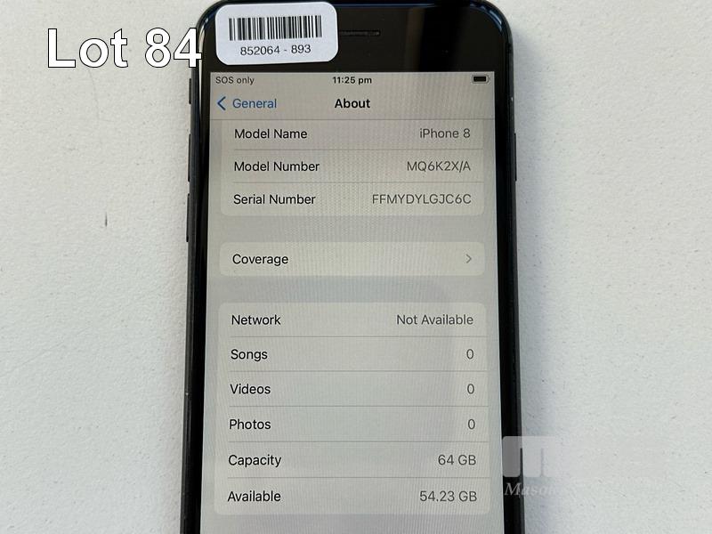 APPLE iPHONE 8, 64GB, SPACE GREY, MODEL MQ6K2X/A, BATTERY HEALTH 84% (NO CABLE, NO CHARGER) (NOTE: MARKS ON CASING & SIDES) S/N:FFMYDYLGJC6C