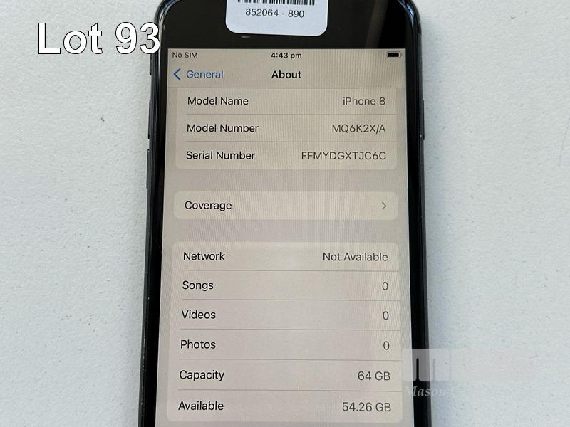 APPLE iPHONE 8, 64GB, SPACE GREY, MODEL MQ6K2X/A, BATTERY HEALTH 80% (NO CABLE, NO CHARGER) (NOTE: MINOR DAMAGE & SCRATCHES) S/N:FFMYDGXTJC6C