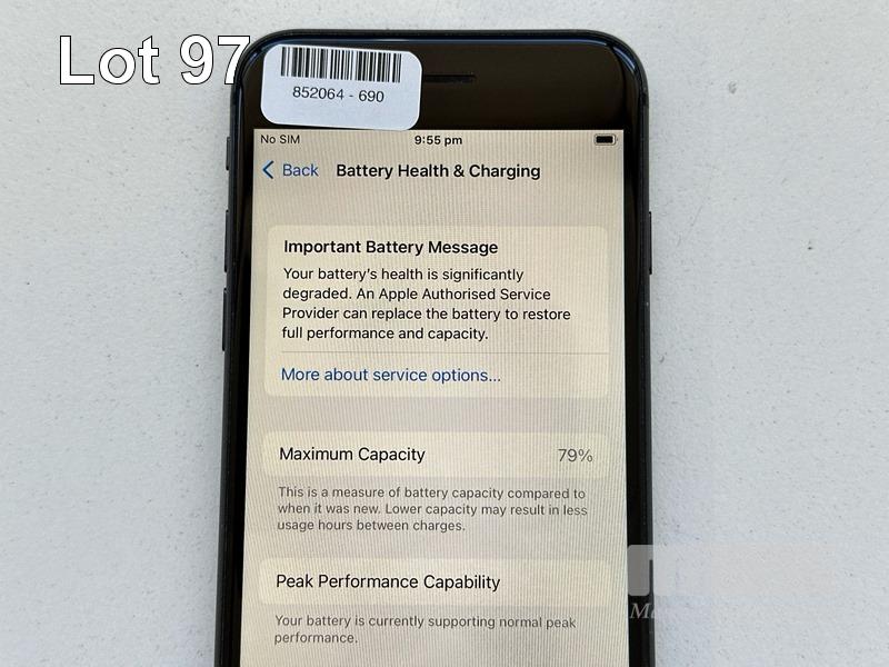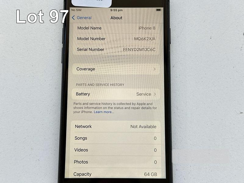APPLE iPHONE 8, 64GB, SPACE GREY, MODEL MQ6K2X/A, BATTERY HEALTH 79% (NO CABLE, NO CHARGER) (NOTE: BATTERY SERVICE MESSAGE) S/N:FFNYD2M1JC6C