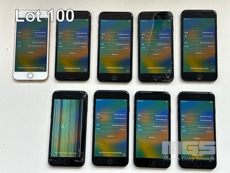 1 x APPLE iPHONE 8, 256GB, GOLD, MODEL MQ7H2X/A 8 x APPLE iPHONE 8, 64GB, SPACE GREY, MODEL MQ6K2X/A (NO CABLES, NO CHARGERS) (NOTE: ALL iCLOUD LOCKED, 2 x DAMAGED) S/N:C7CVH62TJC6Q, FFNYDBJLJC6C, FFNYD2BDJC6C, FFNYTVS0JC6C, FFNYD118JC6C, FFMYDNZ0JC6C, FFMYKS9SJC6C, GGKZT0WHJC6C, N/A
