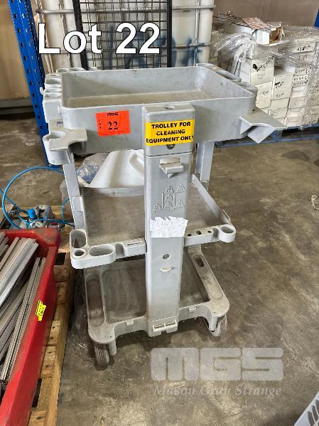 PLASTIC CLEANERS TROLLEY, MOBILE WITH 12 x SWIVEL CASTORS ASSORTED ALLOY EXTRUDED SECTIONS