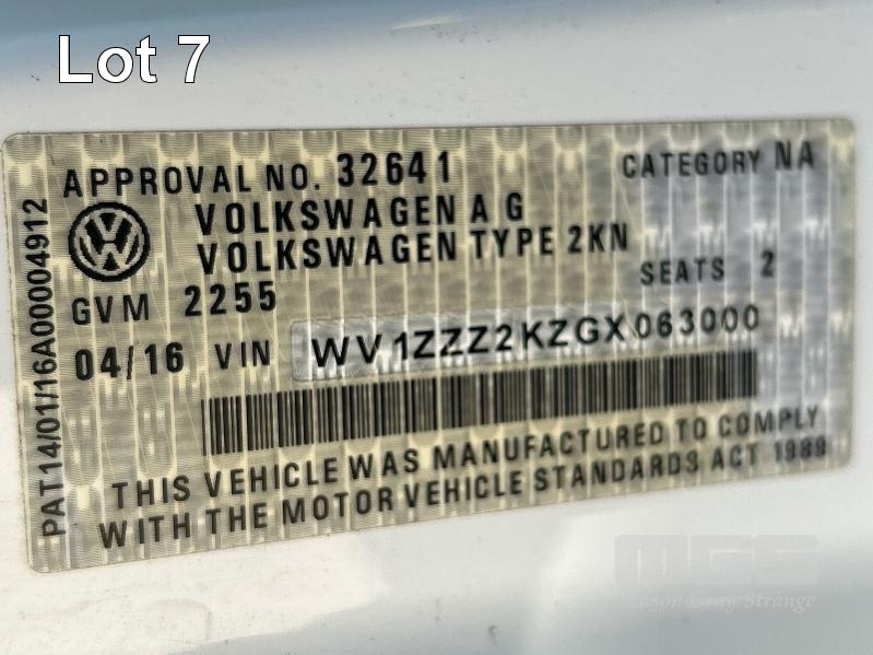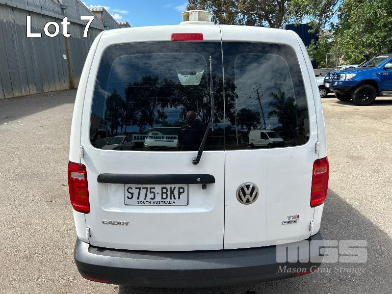 2016 VOLKSWAGON CADDY TSI VAN REG: S775 BKP (SA) VIN: WV1ZZZ2KZGX063000 ODO: 261,793kms SHOWING 4 CYLINDER PETROL, AUTOMATIC TRANSMISSION, WHITE DUCO, 5 DOORS, 2 SEAT, LIGHT BAR, ROOF VENT BARN DOORS ON REAR KEY #5 (WITH 2 KEY/S)