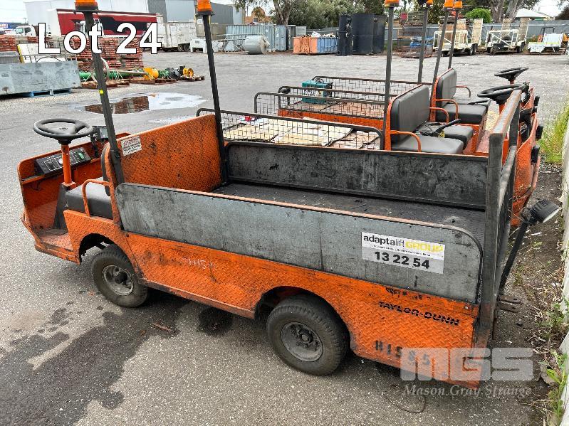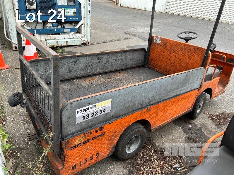 2008 TAYLOR DUNN INDUSTRIAL ELECTRIC UTILITY VEHICLE, BIG FOOT MOD: BO-248-36 S/NO: 176190 2 PERSON WITH TRAY BACK LOAD CAP: 3,000kg FITTED WITH FORK TRACK SAFETY MANAGEMENT SYSTEM TRAY SIZE: 2000 x 1000mm PIN TOW HITCH (NOT INCLUDING CHARGER) NO KEY