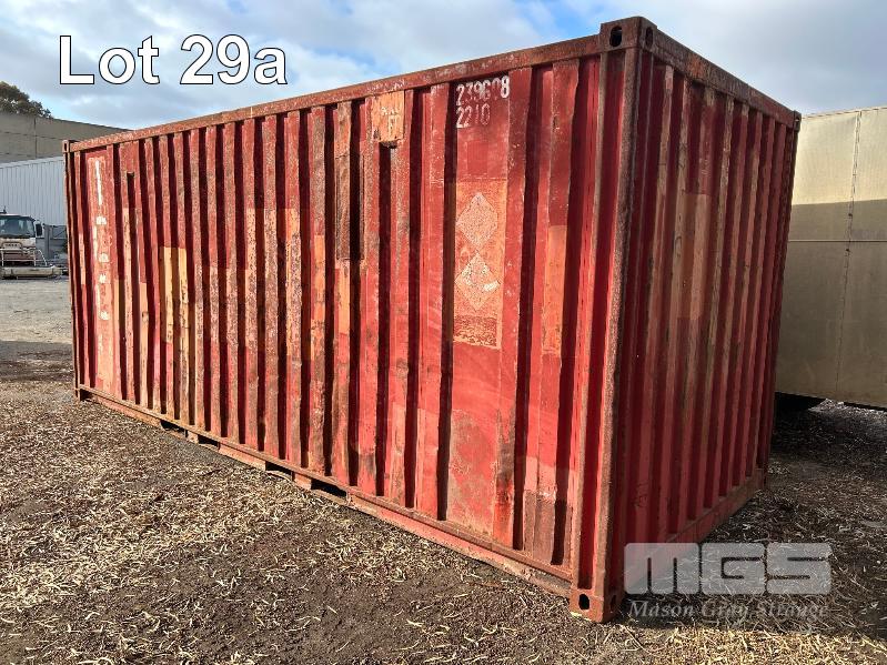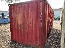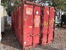 20' SHIPPING CONTAINER RED, FORK POCKETS, TIMBER FLOOR SOME RUST & LEAKS