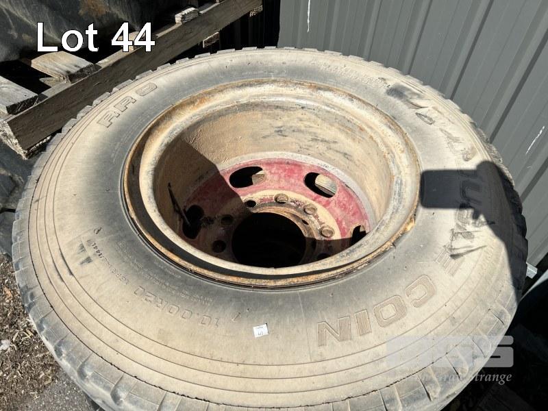 4 x TRUCK RIMS & TYRES, 10 STUD, SM203-10.00 R20 50% TREAD