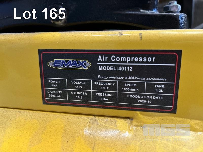 AIR COMPRESSOR, EXMAX MODEL: 40112 4HP, CAPACITY 366 l/MIN, 8BAR, 112 LITRE TANK, 415V
