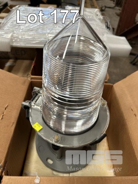 2 x MARINE LANTERNS, TIDELANDS MOD: MAXLUMINA, ML-155 WITH PIERLITE LED LIGHT PANELS, 30-24VDC, STEEL LIGHT SURROUNDS & GUARDS 1 x PALLET