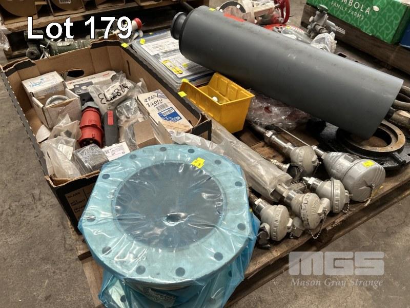 ASSORTED INDUSTRIAL PARTS & COMPONENETS, ICN GLOBE CHECK VALVE, SC480, UNI DRIVE SHAFT, NITROGEN ACCUMULATOR, FOX, TEMP SENSORS, DIAPHRAGM VALVES, FLEXIBLE PIPE COUPLINGS, ETC 1 x PALLET