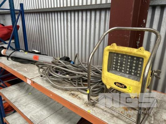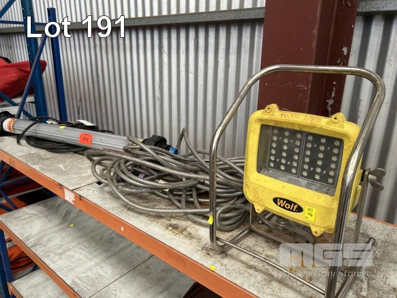 LED WORK LIGHTS, INCLUDING WOLF FLOODLIGHT, WF-300, 24V & ATEXOR SLAM HORNET NEOS WEATHER PROOF TUB LIGHT 1 x SHELF