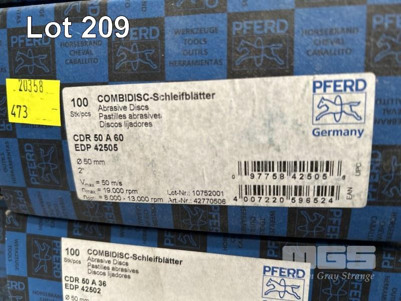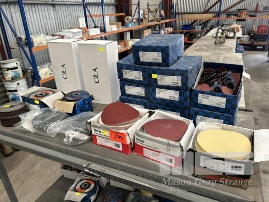 SANDING & GRINDING DISCS, PFERD COMBIDISC CDR 50 A60 9 x BOXES (100/BOX), DISCHI 150mm SANDING DISCS, 3 X BOXES, FLEXOVIT & PFERD ANGLE GRINDER DISCS & FLAP DISCS, 115mm WITH SAFETY GLASSES, C&A TINTED, 2 x BOXES, (12/BOX) 1 x SHELF