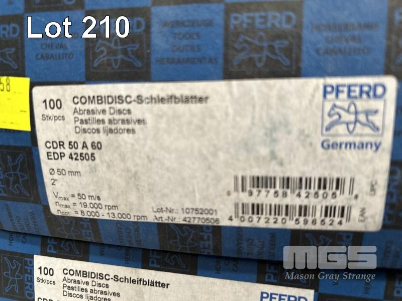 SANDING & GRINDING DISCS, PFERD COMBIDISC CDR 50 A60 9 x BOXES (100/BOX), DISCHI 150mm SANDING DISCS, 2 x BOXES, FLEXOVIT & PFERD ANGLE GRINDER DISCS & FLAP DISCS, 115mm WITH SAFETY GLASSES, C&A TINTED, 2 x BOXES, (12/BOX) 1 x SHELF
