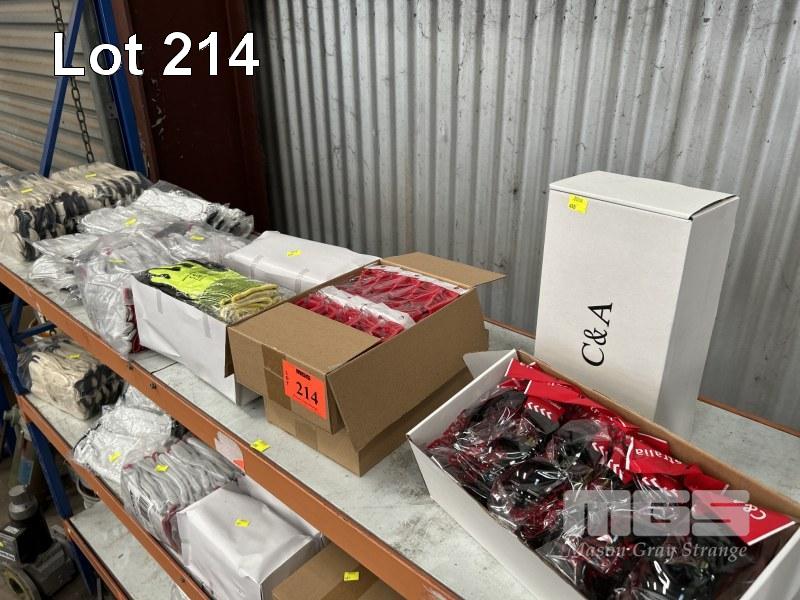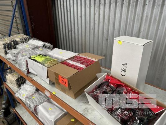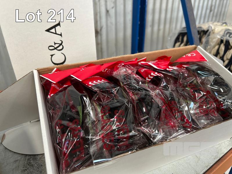 2 x BOXES C&A TINTED SAFETY GLASSES, (12/BOX), RIGGA MATE LEATHER GLOVES, XL, 2 x PACKS, (12/PACK), 20 x PAIRS RIGGERS GLOVES, MEDIUM, FRONTIER SUEDE GLOVES, SMALL, 2 x PACKS, (12/PACK) & 2 x BOXES GLOVE CLIPS