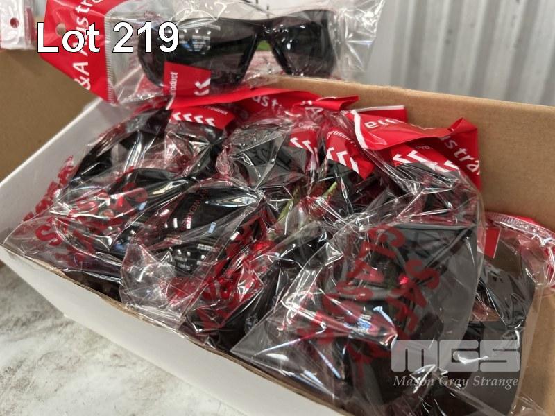 2 x BOXES C&A TINTED SAFETY GLASSES, (12/BOX), RIGGA MATE LEATHER GLOVES, XL, 2 x PACKS, (12/PACK), 20 x PAIRS RIGGERS GLOVES, MEDIUM & 2 x BOXES GLOVE CLIPS