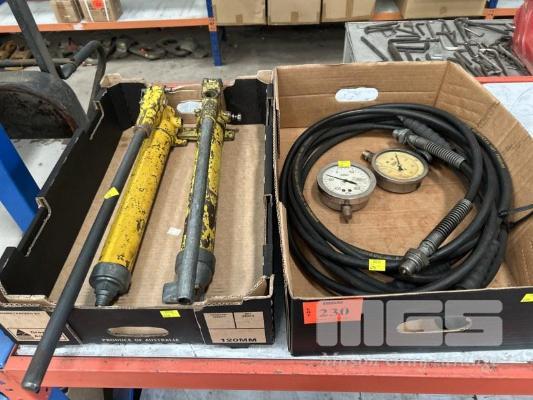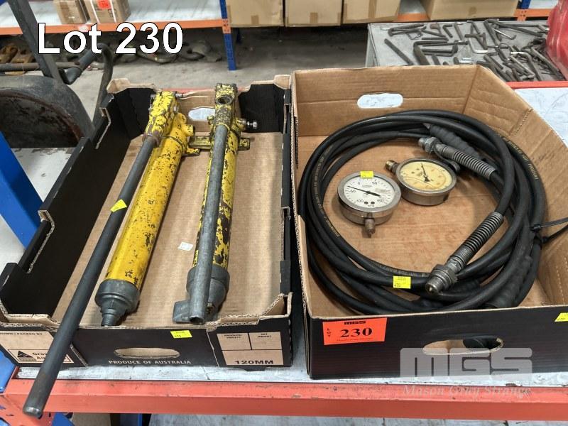 2 x HYDRAULIC POWER PACKS, MANUAL WITH GAUGES & HOSES