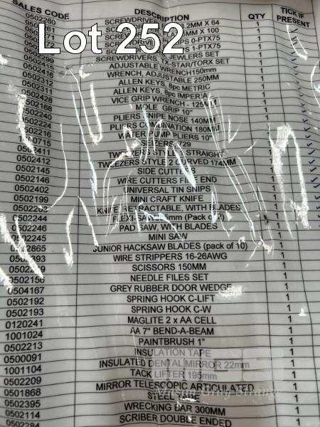 TOOL KIT, ALLEN VANGUARD SKT EOD OPERATIONS TOOL KIT, EX MILITARY SURPLUS WITH SAFETY GLASSES, 1 x BOX OF 12, 12 x PAIRS FRONTIER SUEDE GLOVES, SMALL & 20 x HI VIS FORM FIT SAFETY GLOVES, ETC