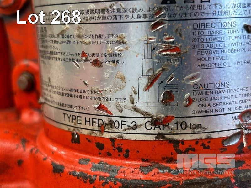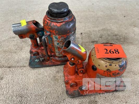 2 x HYDRAULIC BOTTLE JACKS, MASADA INC. HFD 10F3 , 2 STAGE, 10 TON & SINGLE STAGE 20T