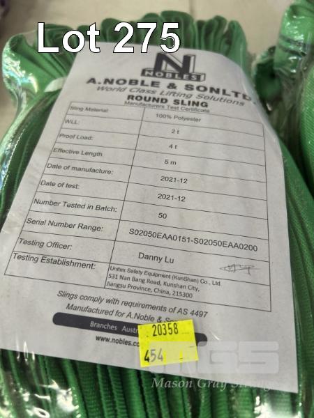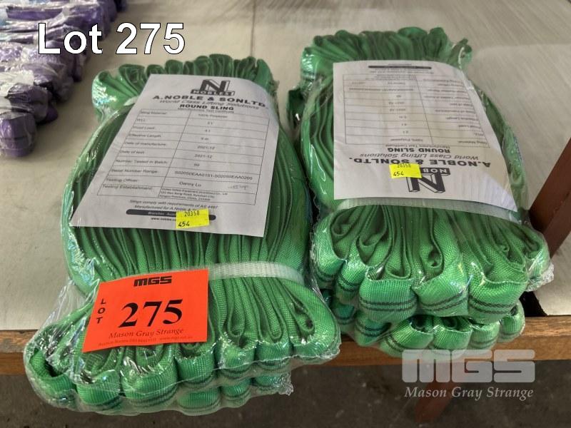 2 x LIFTING SLINGS, NOBLES & SONS, 2 TONNE x 5m, GREEN NEW